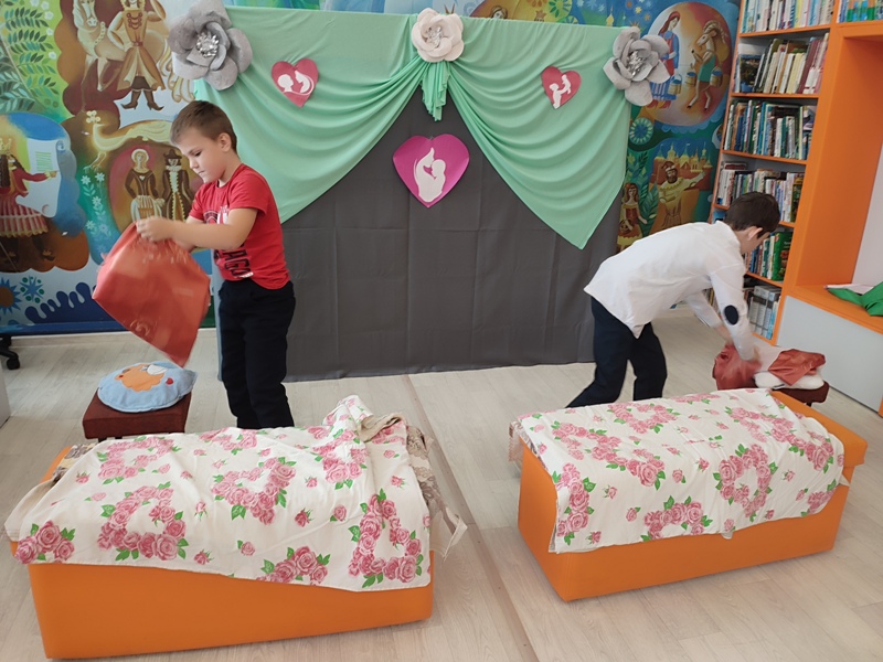 = 13 и 14 октября в детско-юношеском отделе центральной районной библиотеки прошел игровой калейдоскоп "Игро-мама-мания" с учениками 3- и 4-х классов школ города. Библиотекари рассказали ребятам про историю празднования Дня Матери в Беларуси, православного праздника Покрова Пресвятой Богородицы, и о том, что все самые дорогие святыни в мире озарены именем матери. В течении всей программы дети показывали знания, умения и навыки повседневных дел своих мам. Ребята показывали аккуратность, сноровку, правильность, внимательность и скорость в конкурсах на пришивание пуговицы, заправки кровати, покупки продуктов в магазине, составления праздничного меню и знания литературных произведений. В конце мероприятия ребята пообещали любить и беречь своих матерей не только по праздникам, но и в будние дни.