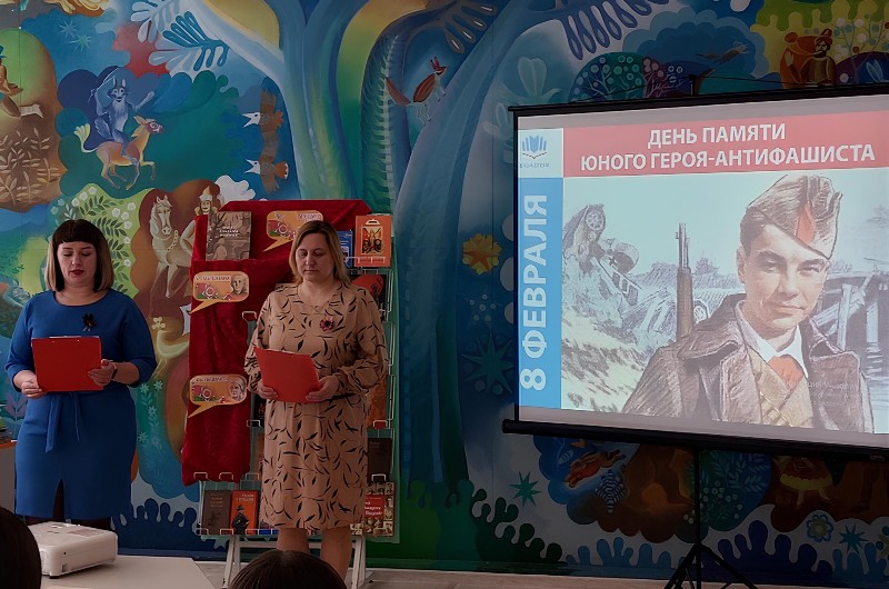 = 5 февраля в преддверии Дня памяти юного героя-антифашиста в детско-юношеском отделе центральной районной библиотеки был проведен литературно-патриотический час ”Юные герои никогда не умирают, они в нашей памяти живут“ для учащихся 7 ”А“ класса средней школы №3 г. Лепеля. Библиотекари рассказали об истории праздника, о мальчишках и девчонках, которые были удостоены самой высокой награды Родины — звания Героя Советского Союза. Школьники с интересом слушали рассказ о своих ровесниках: Лёне Голикове, Зине Портновой, Марате Казее, Вале Котик и других пионерах-героях, чьи подвиги навеки останутся в памяти поколений. Литературно-познавательный час сопровождался показом видео, на котором дети читали стихотворения С.Наровчатова ”Юные безусые герои“, Р.Рождественского ”А мы не стали памяти перечить”, а также видеоклипами ”Надя Богданова” и ”О той весне“. Закончилось мероприятие обзором книг, представленных на выставке-подвиге ”Войной изломанное детство“. Хочется верить, что в памяти ребят навсегда останутся имена юных солдат, с биографиями которых они познакомились на мероприятии.