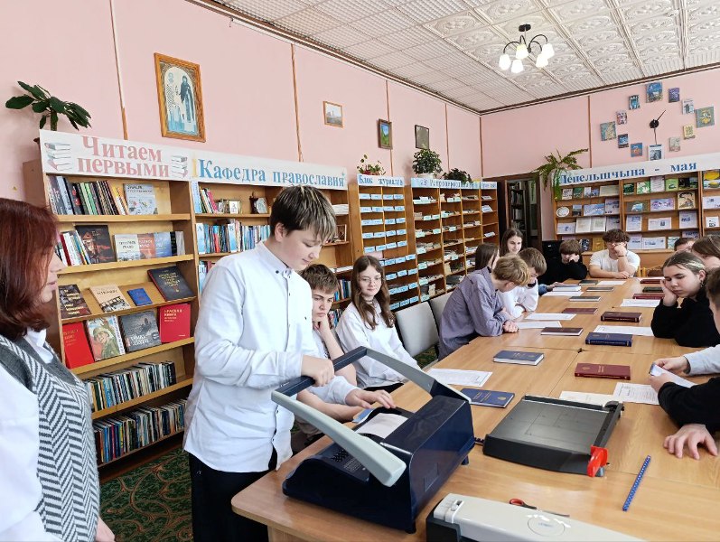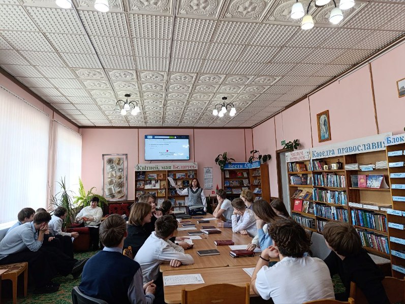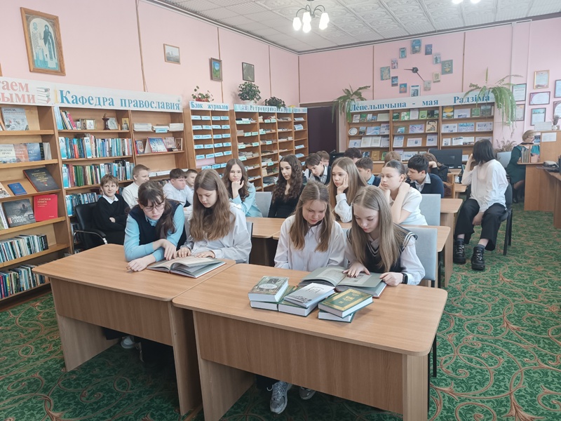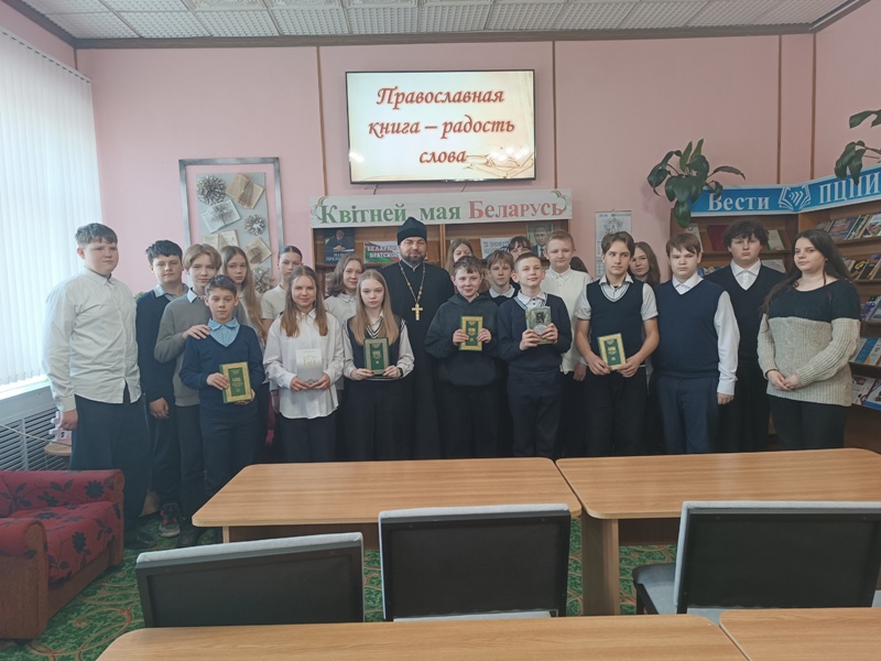 = 13 марта сотрудники библиотеки пригласили учащихся средней школы № 1 г. Лепеля на час духовности «Православная книга – радость слова». В ходе мероприятия, библиограф отдела обслуживания и информации Анжелика Белик рассказала о появлении православной книги, которая является не только источником знаний, но и источником вдохновения. Школьники узнали о том, кто создал славянский алфавит, вспомнили известных переписчиков книг и первых книгопечатников. Познакомились с главной православной книгой – Библией. Доходчиво и познавательно об этой книге рассказал приглашённый гость – Благочинный Лепельского округа протоиерей Сергий Лешкевич. В завершение мероприятия отец Сергий передал в дар библиотеке православные книги. Эта встреча позволила участникам приоткрыть завесу тайн духовной жизни, ведь православная книга – это мост между поколениями и путь к Богу.