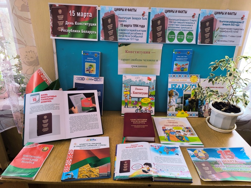= C 1 по 31 марта в читальном зале центральной районной библиотеки в ПЦПИ работает книжная выставка, посвященная Дню Конституции Республики Беларусь,”Конституция – основной закон страны“.