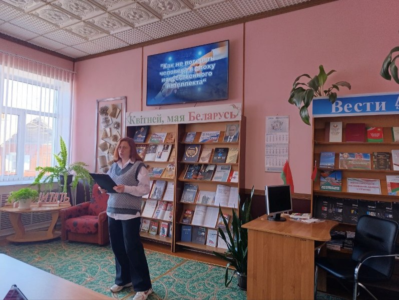 = 16 марта в центральной районной библиотеке в рамках клуба ”Познаем мир“ была проведена беседа-обсуждение ”Как не потерять человека в эпоху искусственного интеллекта“. Библиотекарь отдела обслуживания и информации рассказала об искусственном интеллекте (ИИ) как о науке на стыке математики, биологии, психологии, кибернетики и других наук. Эта наука изучает технологии, которые позволяют человеку писать ”интеллектуальные“ программы и учить компьютеры решать задачи самостоятельно. Участники встречи с большим интересом посмотрели слайд-презентацию и видео о применении ИИ при создании видеоигр, систем видеонаблюдения, рекомендации фильмов и музыки в соответствии с пожеланиями пользователя.