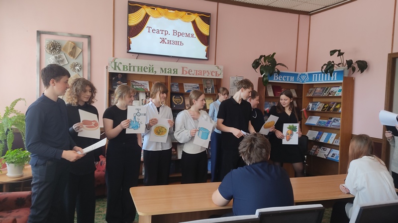 = 16 марта в читальном зале центральной районной библиотеки, в рамках проекта ”Мир искусства“ прошло очередное мероприятие.Участниками беседы с мультимедийной презентацией ”Театр. Время. Жизнь“ стали ученики 8 ”Б“ класса ГУО ”Средняя школа № 1 г. Лепеля“.Библиограф отдела обслуживания и информации Анжелика Белик рассказала ребятам о театре - тонком переплетении практически всех искусств – музыки, живописи, литературы, танца, риторики. Средством выразительностикоторого служит актёр. Познакомила ребят с историей возникновения театра, более детально остановилась на развитии театра в Беларуси и России. Мероприятие получилось познавательным и по-настоящему увлекательным. Участники не только слушали , но и отвечали на вопросы викторины о театре и пробовали себя в роли актера в мини сценках, изображая одушевленные и неодушевленные образы: кастрюля, холодильник, вода, хозяйкамартышки, колибри, черепаха и др.